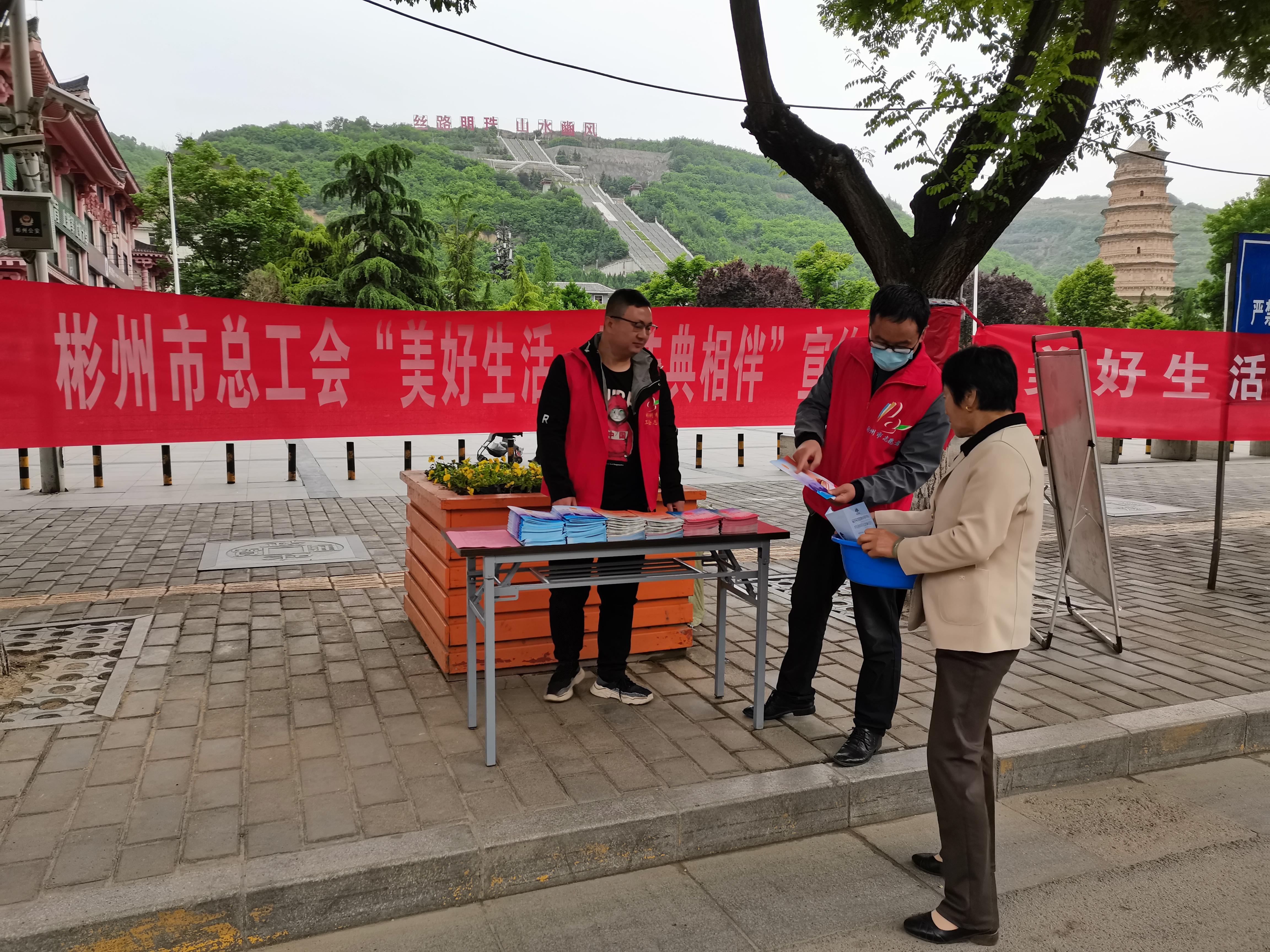 5月26日,彬州市總工會在開元廣場開展“美好生活 民法典相伴”主題宣傳活動。本次活動以《民法典》《工會法》《工會章程》《農民工支付條例》和《勞動法》等作為